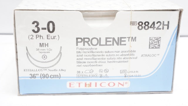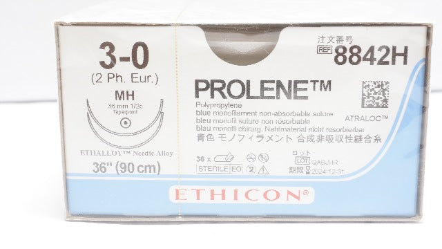 - Ethicon 8842H 3-0 PROLENE, Blue MH 36mm 1/2c Taper, 36In - Box of 36 (x)