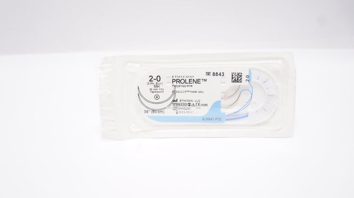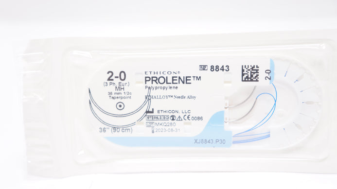 - Ethicon 8843 2-0 Prolene Polypropylene Stre MH 36mm 1/2c Taper, 36 inch (x)