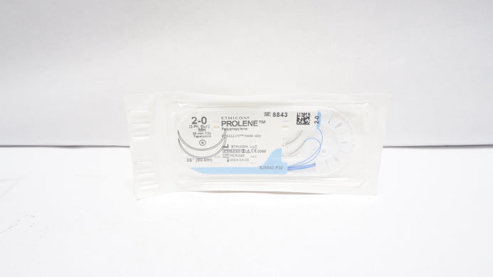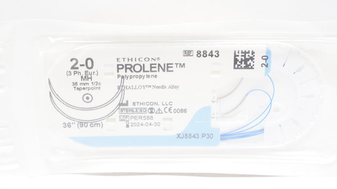 - Ethicon 8843 2-0 Prolene Polypropylene Stre MH 36mm 1/2c Taper, 36 inch (x)