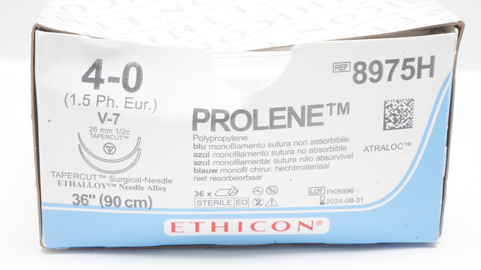 - Ethicon 8975H 4-0 PROLENE Stre V-7 26mm 1/2c Tapercut, 36inch (x) - Box of 36