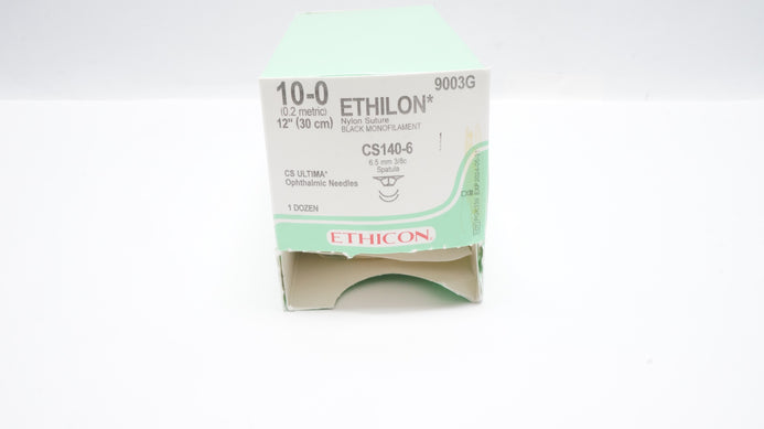 - Ethicon 9003G 10-0 Ethilon Nylon Stre CS140-6 6.5 mm 3/8c 12In (x) - Box of 11