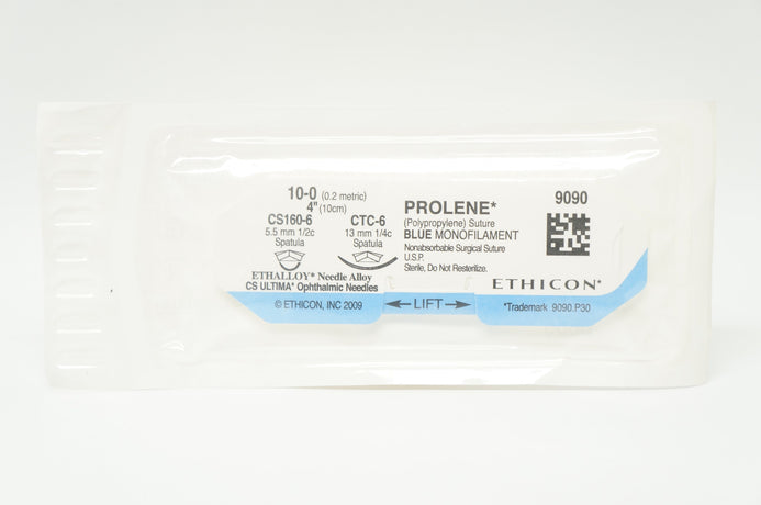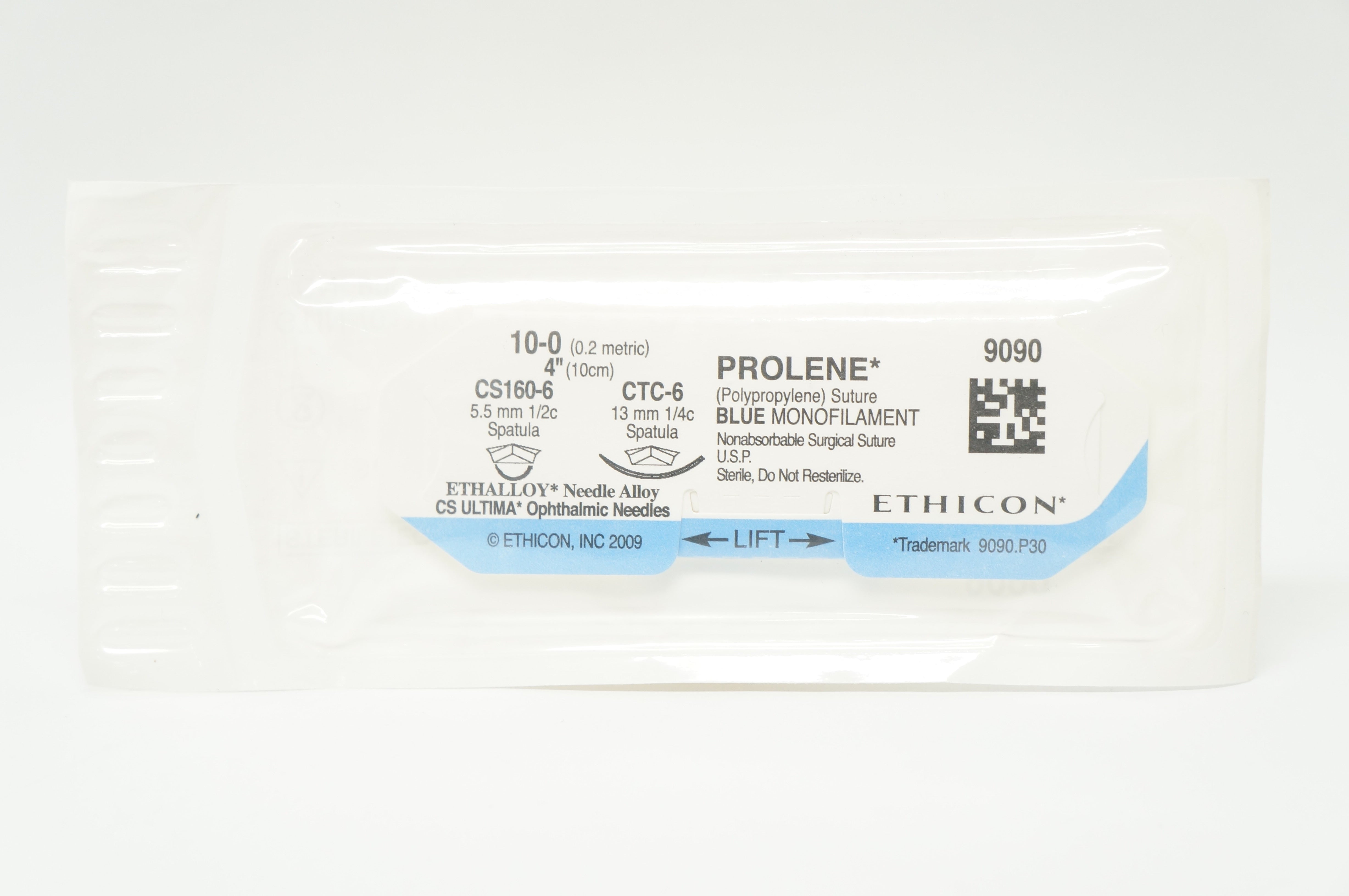 - Ethicon 9090 10-0 PROLENE CS160-6 Blue Monofilament 5.5mm 1/2c Spatula, 4in (x)