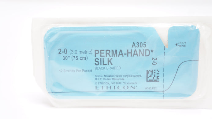 - Ethicon A305 2-0 Perma-Hand Silk Black Braided Stre 30inch (x)