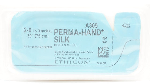 - Ethicon A305 2-0 Perma-Hand Silk Black Braided Stre 30inch (x)