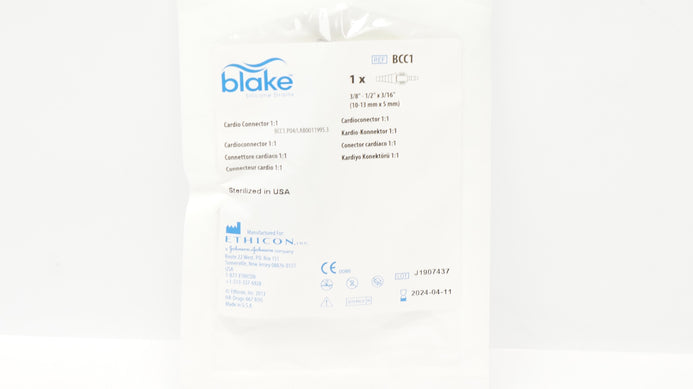 - Ethicon BCC1 BLAKE Cardio Connector 3/8in - 1/2in x 3/16in (x)