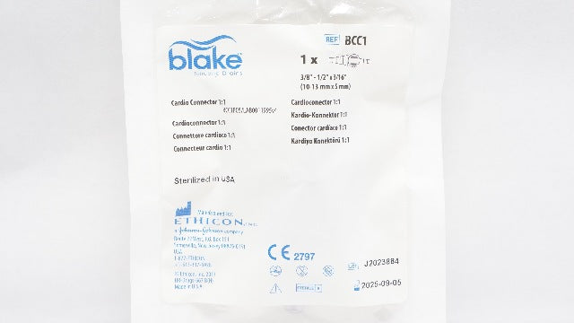 - Ethicon BCC1 BLAKE Cardio Connector 3/8in - 1/2in x 3/16in (x)
