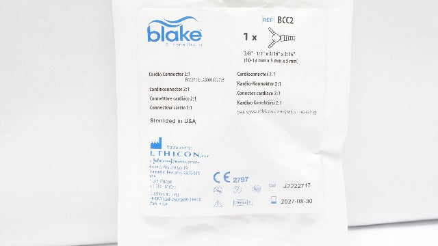 - Ethicon BCC2 Blake Silicone Drains Cardio Connector 2:1 3/8-1/2x3/16x3/16in