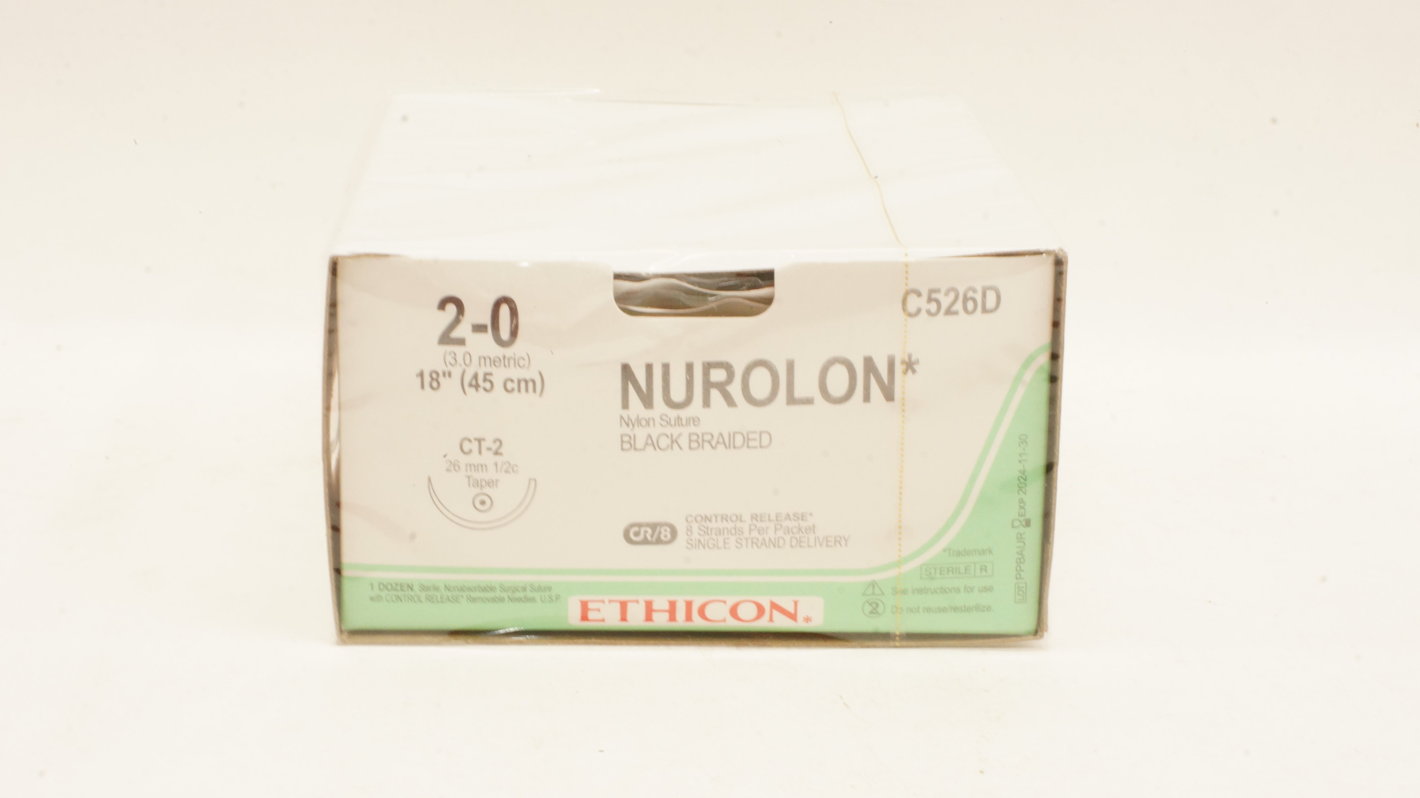 - Ethicon C526D 2-0 NUROLON, CT-2, 26mm 1/2c Taper, 18inch - Box of 12