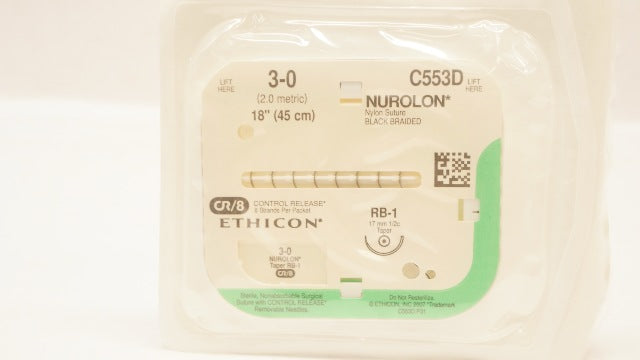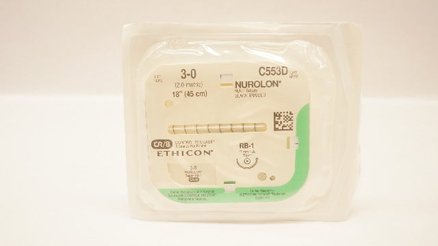 - Ethicon C553D 3-0 NUROLON Nylon Stre, RB-1 17mm 1/2c Taper, 18inch (x)