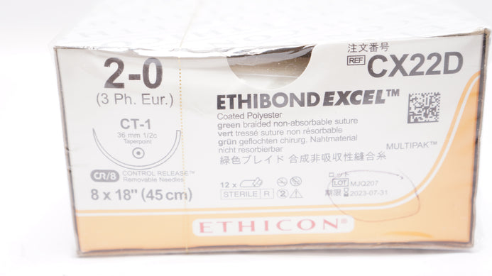 - Ethicon CX22D 2-0 ETHIBOND EXCEL CT-1 1/2 36mm 18inch (x) - Box of 12