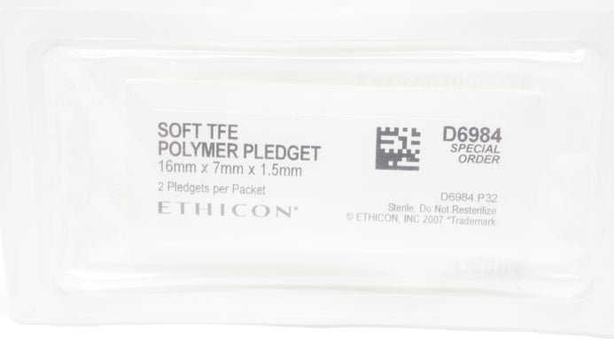 - Ethicon D6984 Soft TFE POLYMER PLEDGET 16mm x 7mm x 1.5mm - Pack of 2