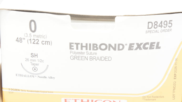 - Ethicon D8495 0 Ethibond Excel Polyester Stre SH 26mm 1/2c Taper, 48In-Box of 36