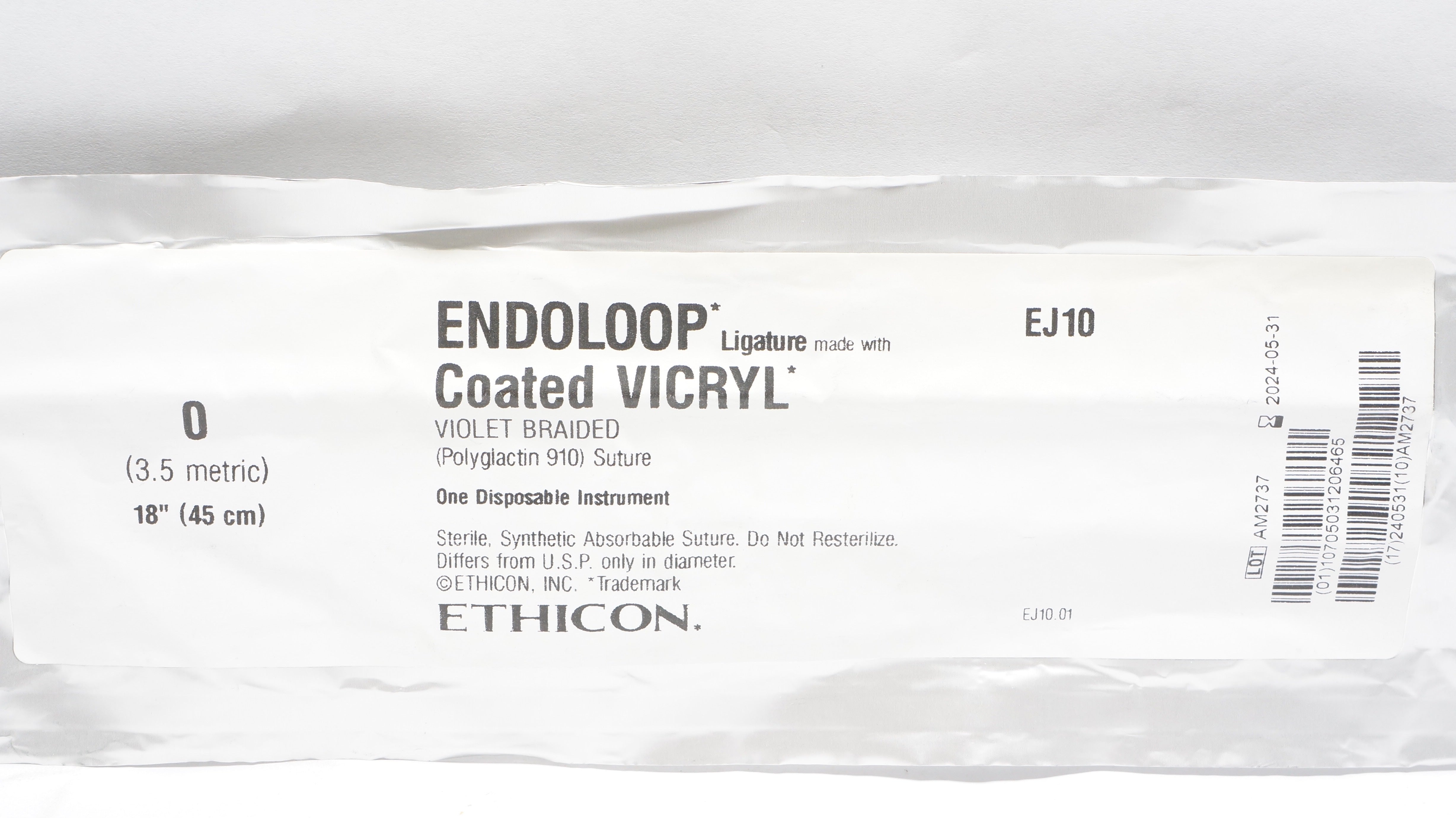 - Ethicon EJ10 0 ENDOLOOP Coated VICRYL, Violet Braided Stre, 18inch (x)
