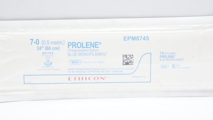 - Ethicon EPM8745 7-0 Prolene Stre BV175-8 9.3mm 3/8c Taper, 24inch (x)