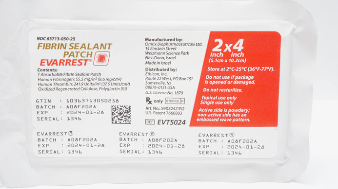 - Ethicon EVT5024 Evarrest Fibrin Sealant Patch 2inch x 4inch (x)