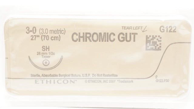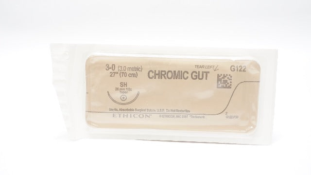 - Ethicon G122 3-0 Chromic Gut Surgical Stre SH 26mm 1/2c Taper, 27inch