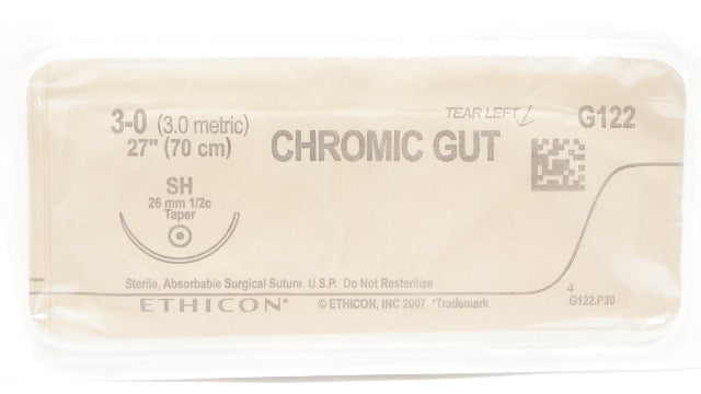 - Ethicon G122 3-0 Chromic Gut Surgical Stre SH 26mm 1/2c Taper, 27inch (x)