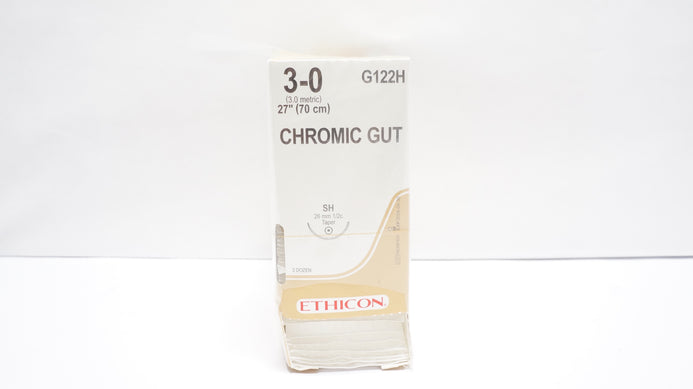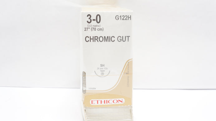 - Ethicon G122H 3-0 CHROMIC GUT Stre SH 26mm 1/2c Taper, 27inch - Box of 35