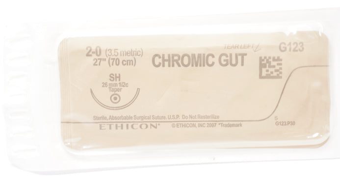 - Ethicon G123 2-0 Chromic Gut 27inch Surgical Stre SH 26mm 1/2c Taper (x)
