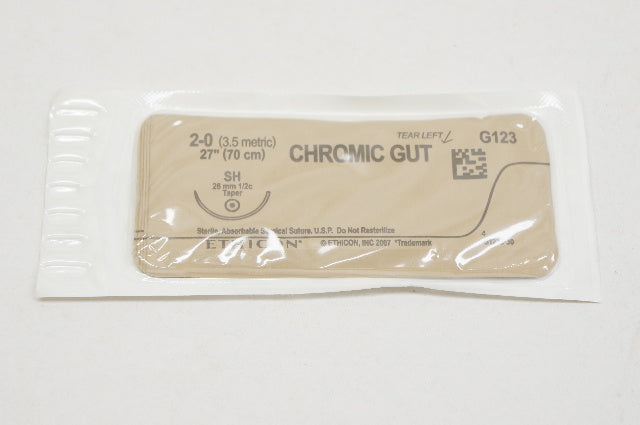 - Ethicon G123 2-0 CHROMIC GUT Surgical Stre SH 26mm 1/2c Taper, 27inch