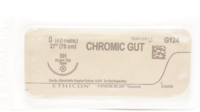 - Ethicon G124 0 Chromic Gut Surgical Stre SH 26mm 1/2 Taper, 27inch (x)