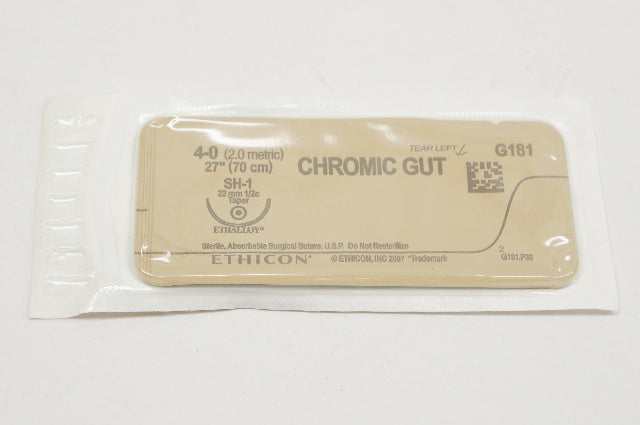 - Ethicon G181 4-0 CHROMIC GUT, SH-1, 22mm 1/2c Taper, 27inch (x)
