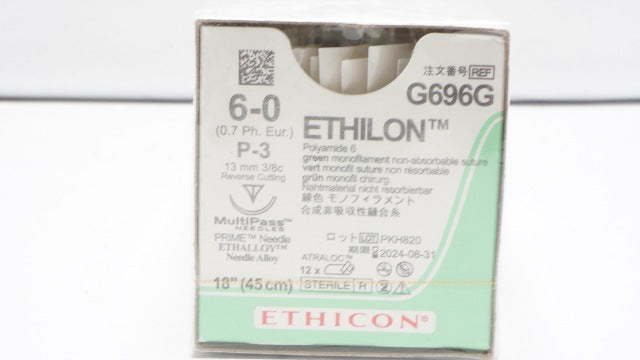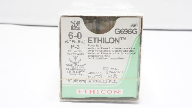- Ethicon G696G 6-0 ETHILON P-3 13mm 3/8c Reverse Cutting, 18inch (x) - Box of 12
