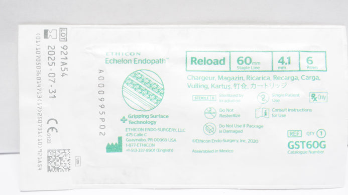 - Ethicon GST60G Endopath Echelon Reload 60 mm Staple Line 4.1 mm 6 Rows (x)