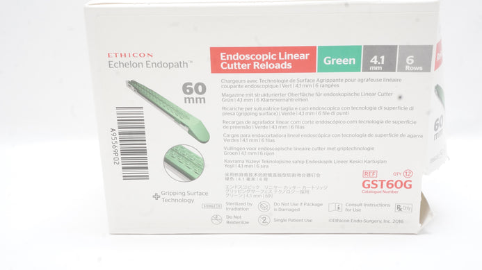 - Ethicon GST60G Endoscopic Linear Cutter Reloads 60mm 4.1mm 6 Rows (x)- Box of 6