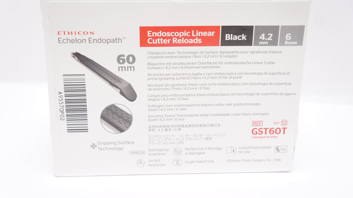 - Ethicon GST60T Endopath Echelon Reloads, 60mm x 4.2mm 6 Rows (x) - Box of 12