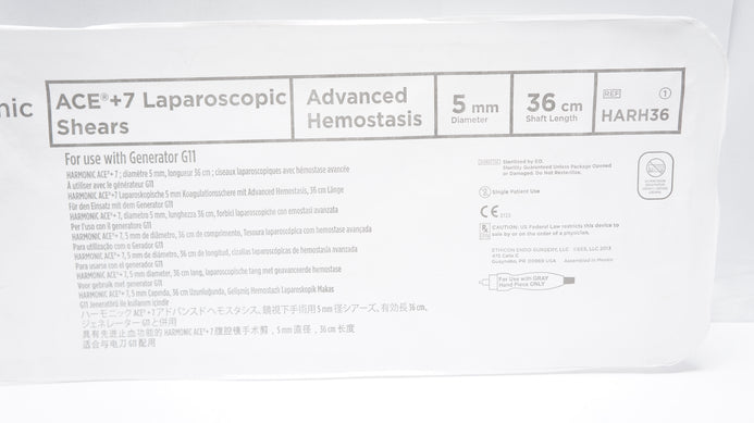 - Ethicon HARH36 Harmonic ACE +7 Laparoscopic Shears 5mm x 36cm (x)