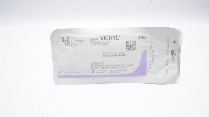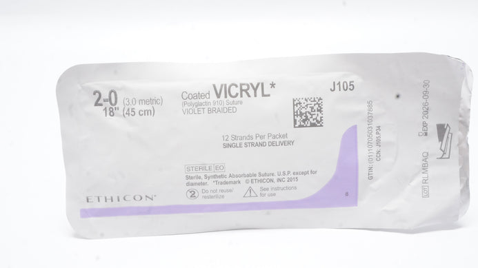 - Ethicon J105 2-0 Coated VICRYL, Violet Braided, 18inch Stre.