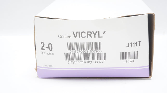 - Ethicon J111T 2-0 VICRYL Polyglactin Stre Undyed Braided, 18inch (x) - Box of 20