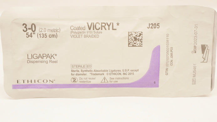 - Ethicon J205 3-0 VICRYL 54inch LIGAPAK Dispensing Reel Violet Braided Stre.