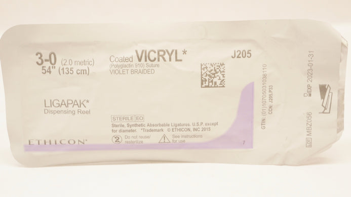 - Ethicon J205 3-0 VICRYL 54inch LIGAPAK Dispensing Reel Violet Braided Stre. (x)