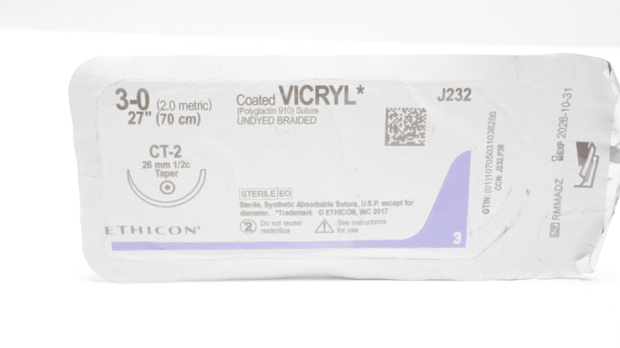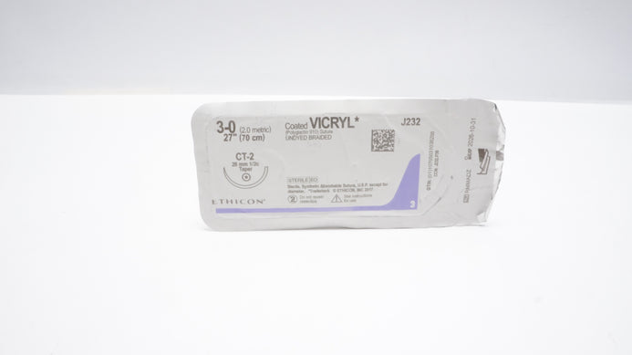 - Ethicon J232 3-0 VICRYL, CT-2, 26mm 1/2c Taper, 27inch