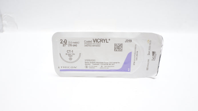 - Ethicon J259 2-0 Coated VICRYL, CT-1 36mm 1/2c Taper, 27inch (x)