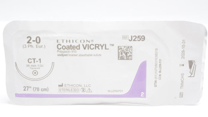 - Ethicon J259 2-0 Coated VICRYL Stre CT-1 36mm 1/2c Taperpoint, 27inch