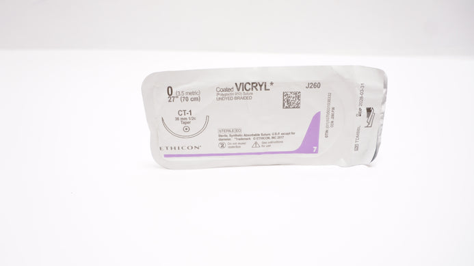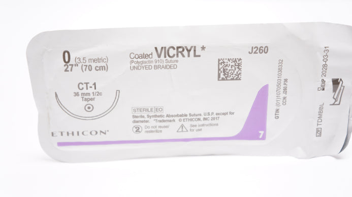 - Ethicon J260 0 VICRYL, CT-1, 36mm 1/2c Taper, 27inch
