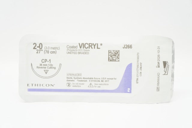 - Ethicon J266 2-0 VICRYL Polyglactin Stre CP-1 36mm 1/2c Reverse Cutting 27inch