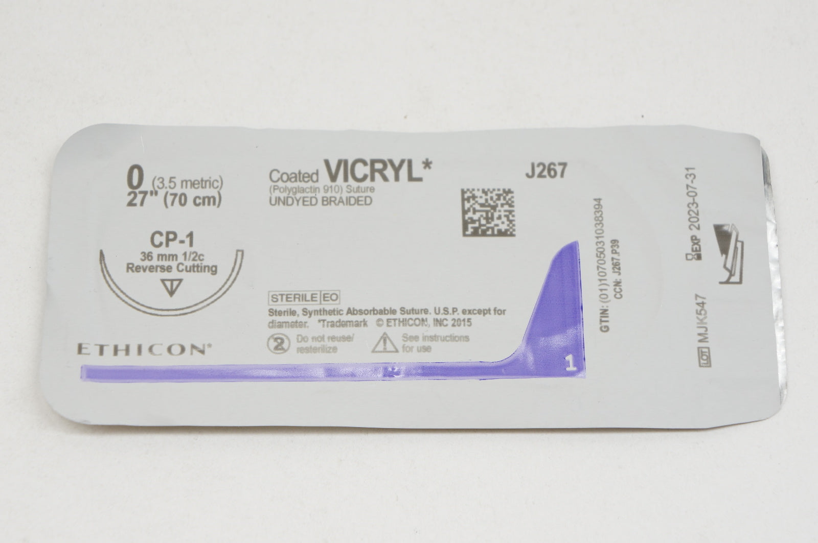 - Ethicon J267 0 VICRYL, CP-1, 36mm 1/2c, 27inch