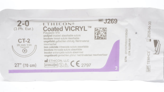 - Ethicon J269 2-0 Coated VICRYL Stre CT-2 26mm 1/2c Taperpoint 27inch