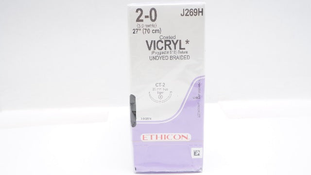 - Ethicon J269H 2-0 VICRYL Stre CT-2 26mm 1/2c Taper, 27inch (x) - Box of 36