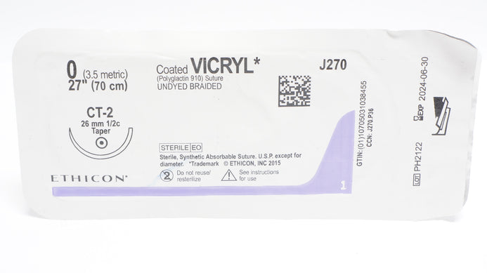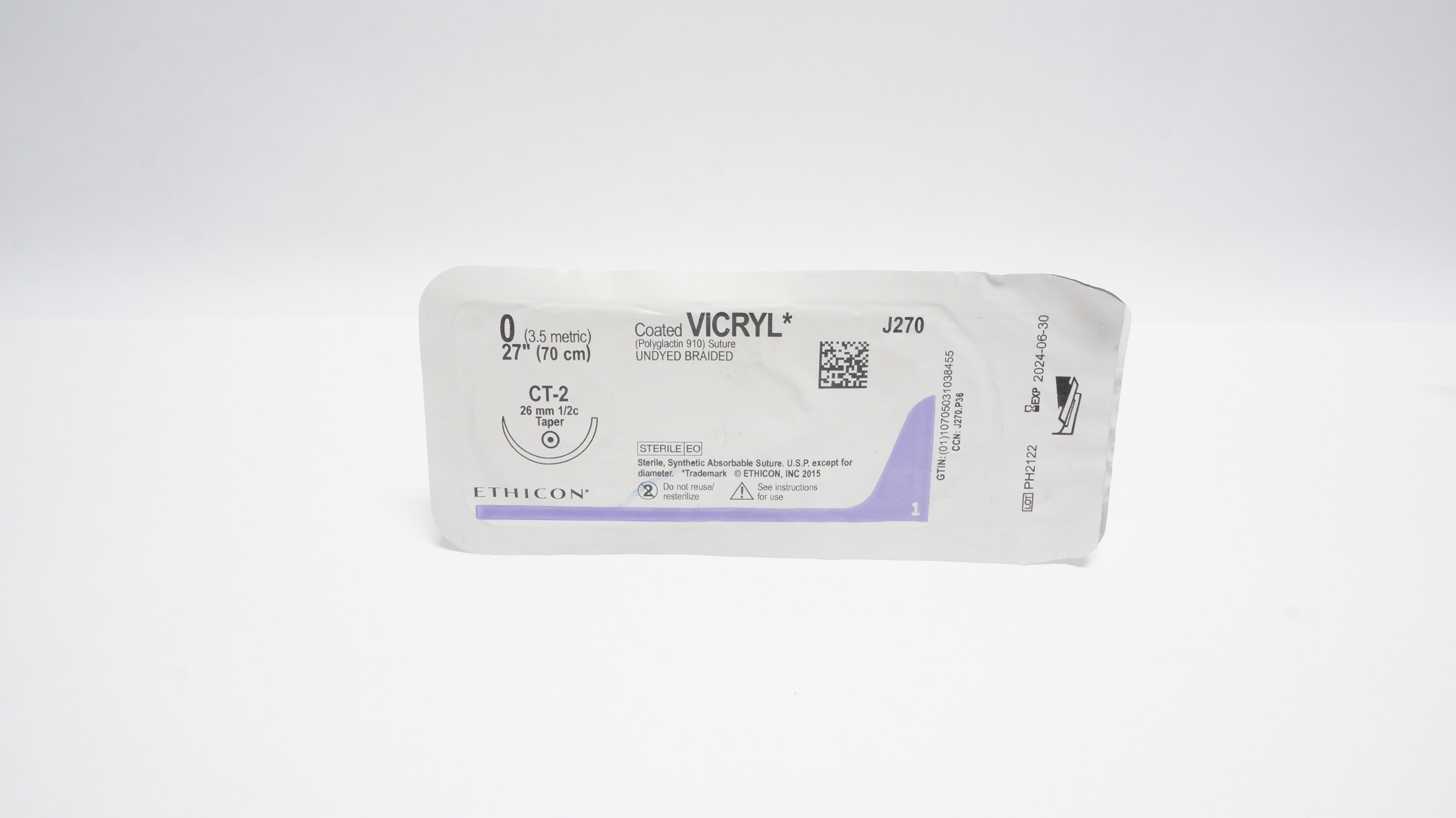 - Ethicon J270 0 Coated VICRYL Undyed Braided,CT-2 26mm 1/2c Taper, 27inch (x)