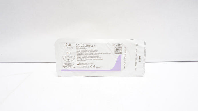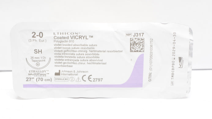 - Ethicon J317 2-0 Coated VICRYL Stre SH 26mm 1/2c Taperpoint 27inch