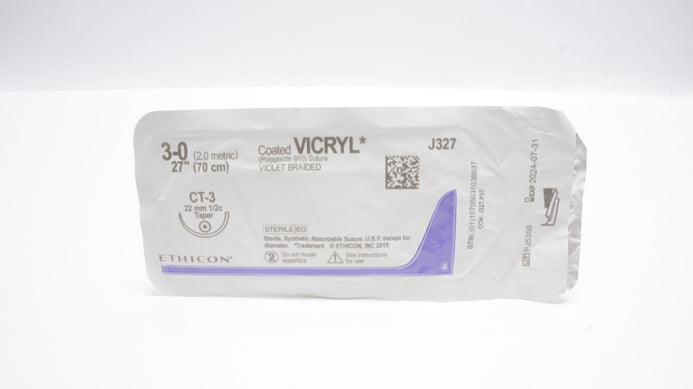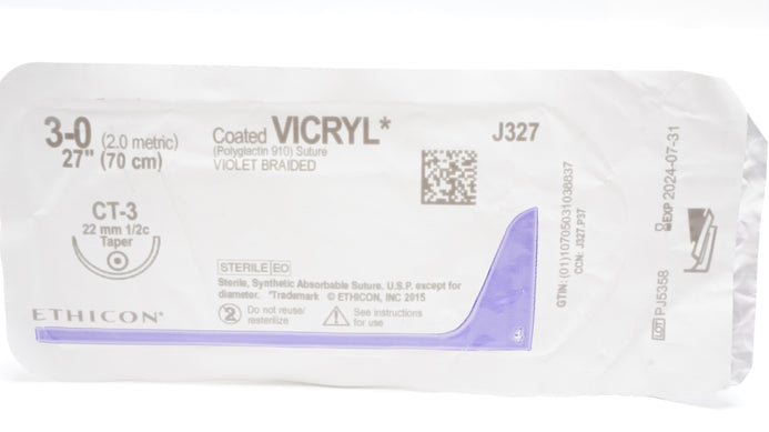 - Ethicon J327 3-0 Coated VICRYL Stre Braided CT-3 22mm 1/2c Taper, 27inch (x)