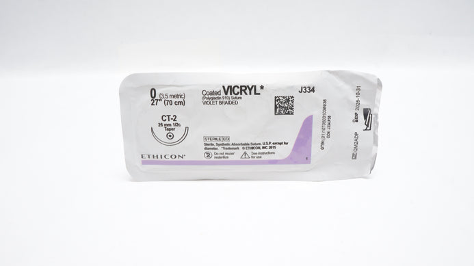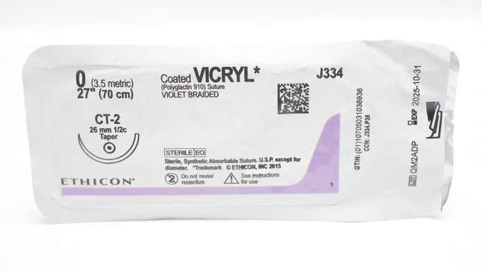- Ethicon J334 0 Coated VICRYL Violet Braided Stre CT-2 26mm 1/2c Taper, 27inch
