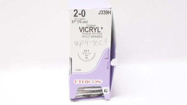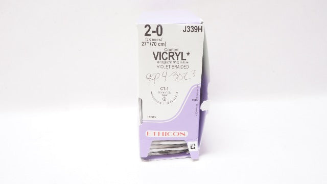- Ethicon J339H 2-0 Coated Vicryl Stre CT-1 36mm 1/2c Taper 27In - Box of 34 (x)