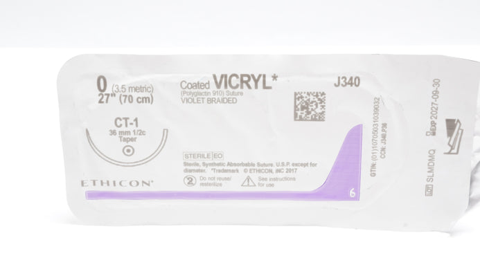 - Ethicon J340 0 Coated VICRYL Polyglactin 910 Stre, CT-1 36mm 1/2c Taper, 27inch