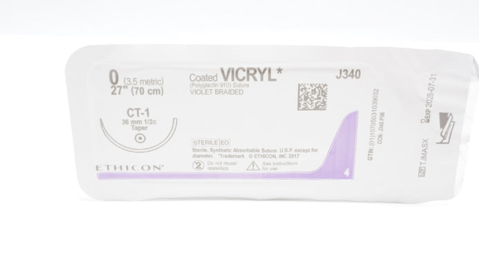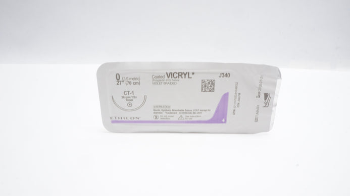 - Ethicon J340 0 Coated VICRYL Polyglctin Stre, CT-1 36mm 1/2c Taper, 27inch